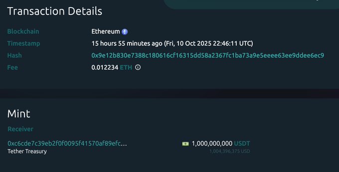Tether, the issuer of the world’s largest stablecoin, has minted $1 billion USDT, fueling speculation of an impending liquidity wave across digital asset markets. According to on-chain data, the new mint represents one of the largest single-day issuances this quarter, historically linked to ±12% Bitcoin price volatility within 15 days.
