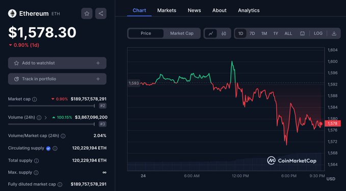 Ethereum’s recent price analysis paints a gloomy picture, as the second-largest cryptocurrency struggles to break above the $1,600 level. ETH has fallen below critical monthly supply levels, and technical indicators are signaling a bearish sentiment, with the currency currently trading below major moving averages, including EMA 10, EMA 20, and SMA 50.
