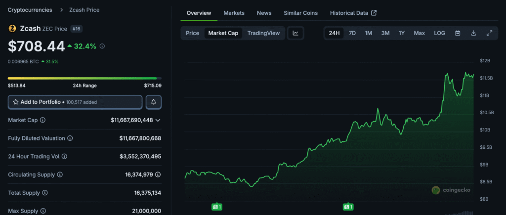 - ZEC price up 700% since September 2025 amid privacy resurgence